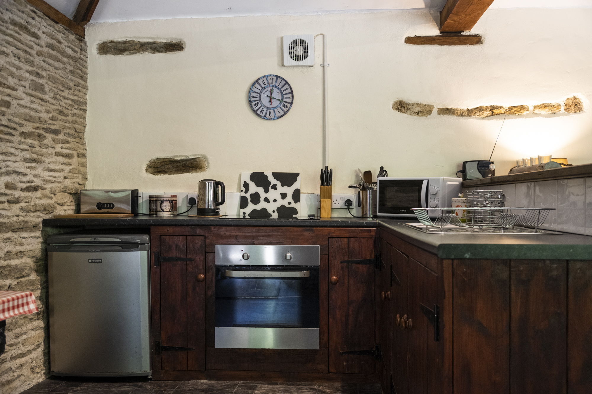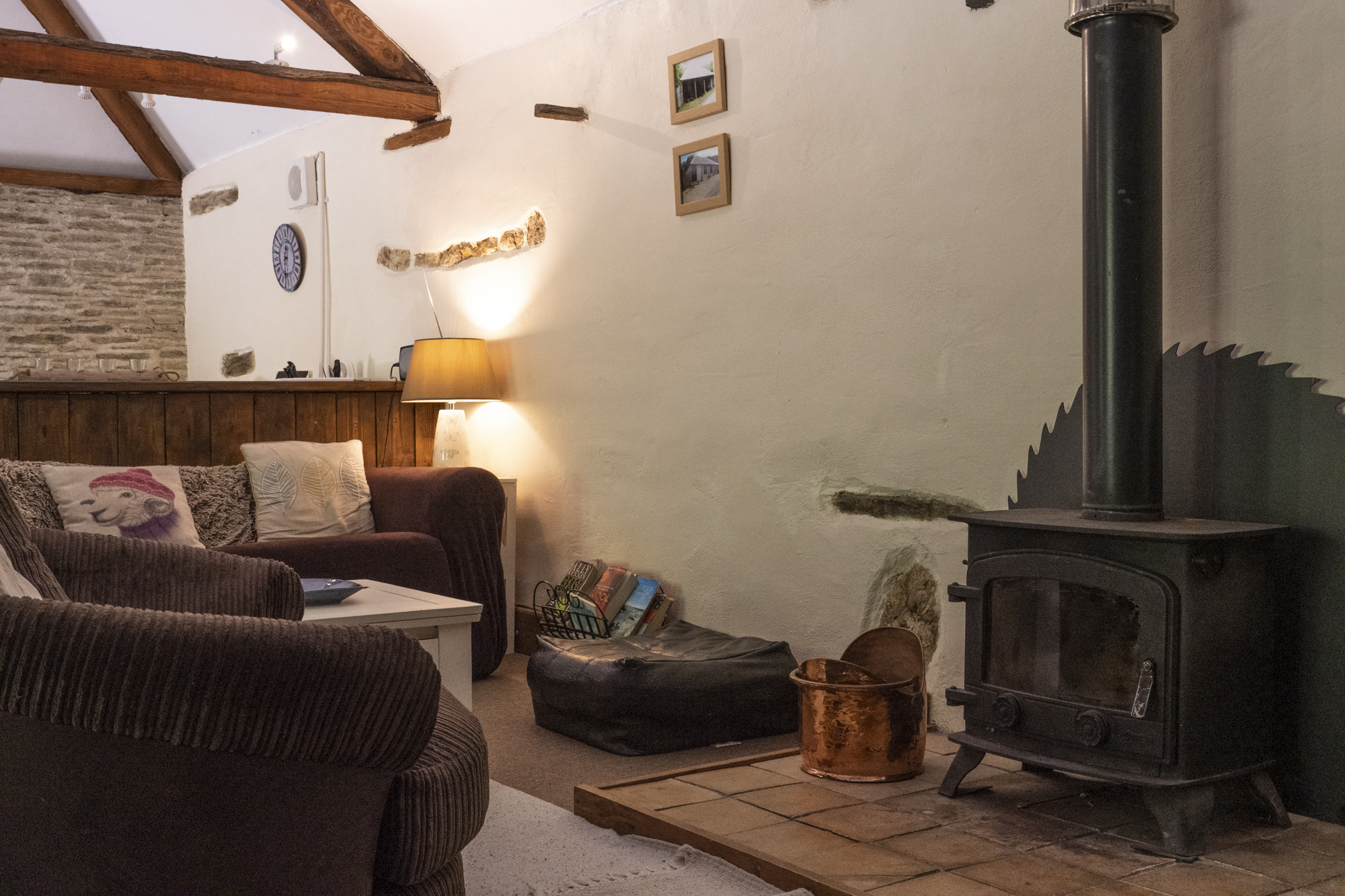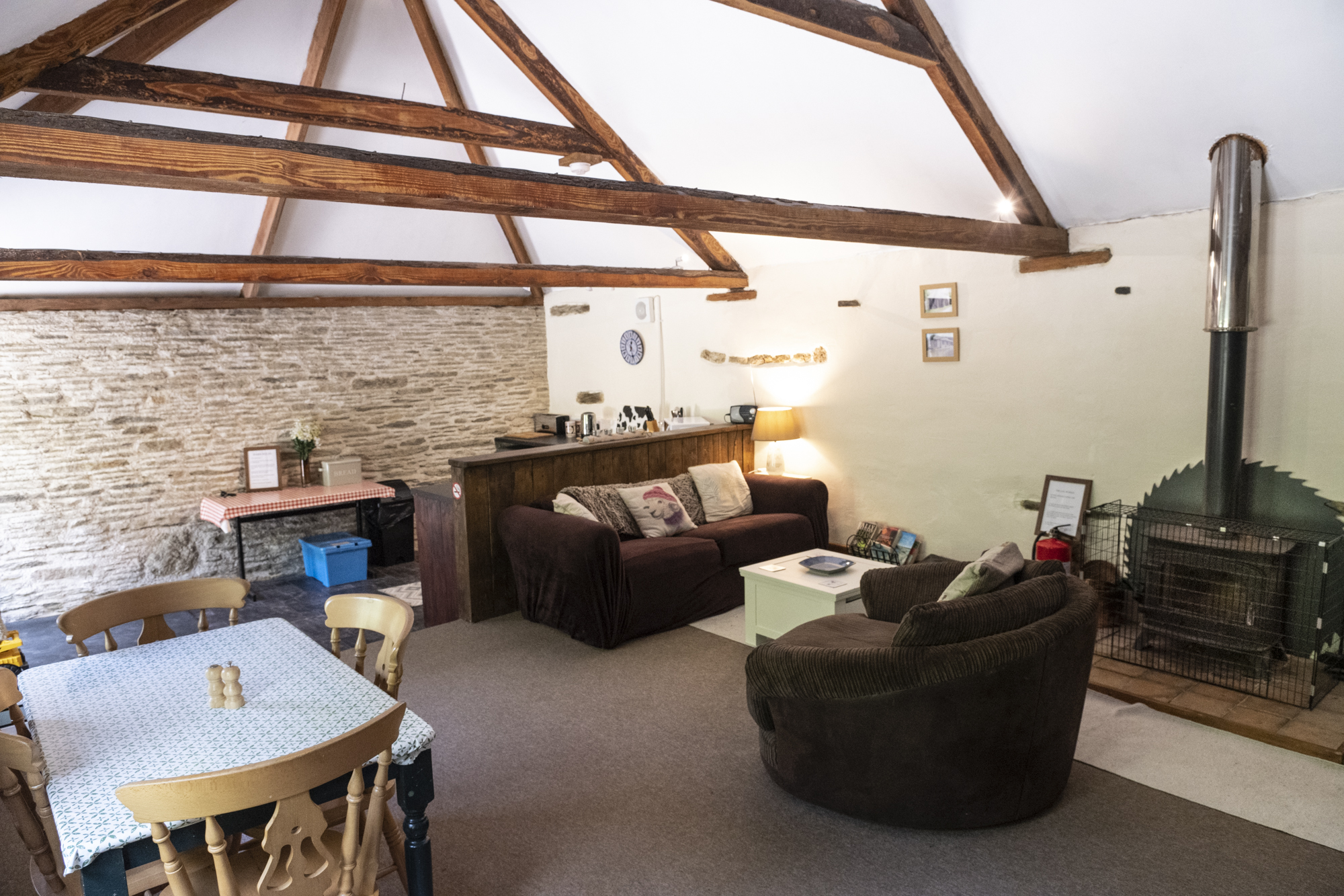 We have two barns, Both barns have log burners and hot and cold running water,