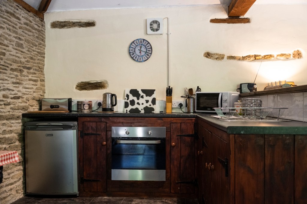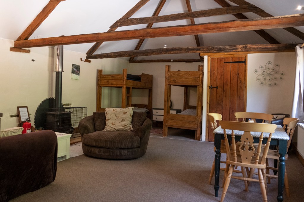The Cart shed is more of an open plan chalet with a kitchen , bathroom with shower, seating area and bunks for four people, if you require extra beds, we have a couple of mattresses to go on the floor.